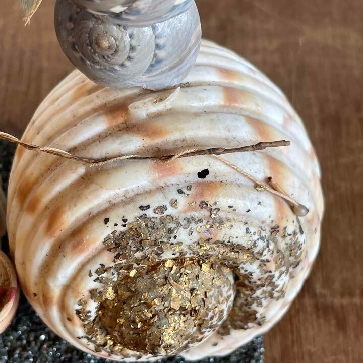 貝殻で作られた胴体と木の笠がとても可愛いく作りの細かさにも驚かされます。