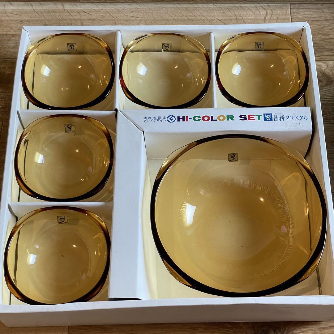 カガミクリスタルのアンバーカラーのボウルセットです。