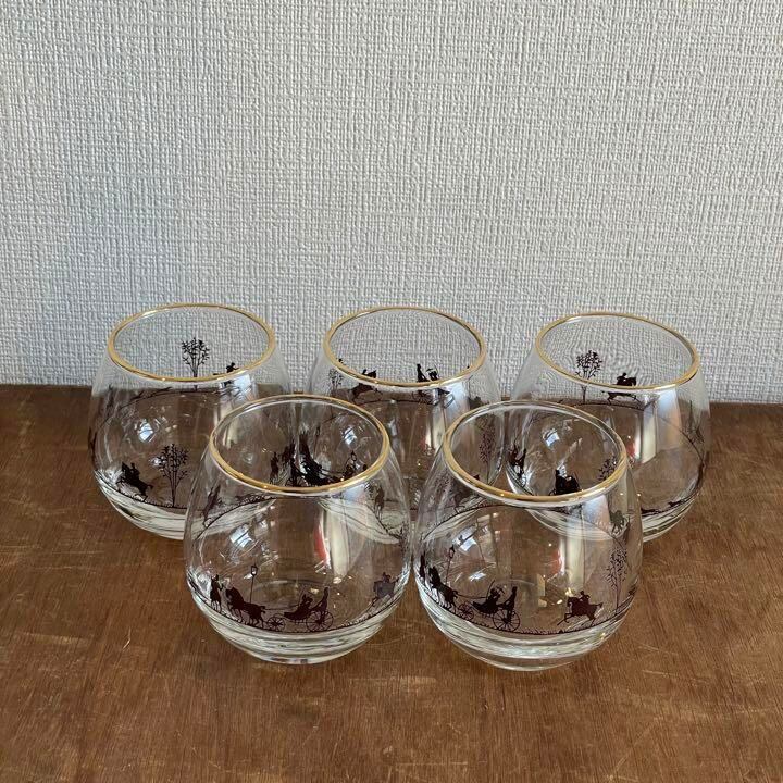 【昭和レトロ】✴︎メルヘングラス✴︎5客セット✴︎茶托付き✴︎