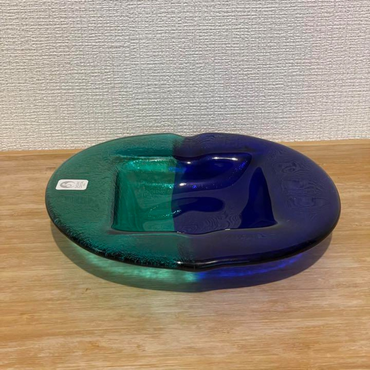 海の様なバイカラーがとても素敵な佐々木クリスタルの灰皿 未使用品です。