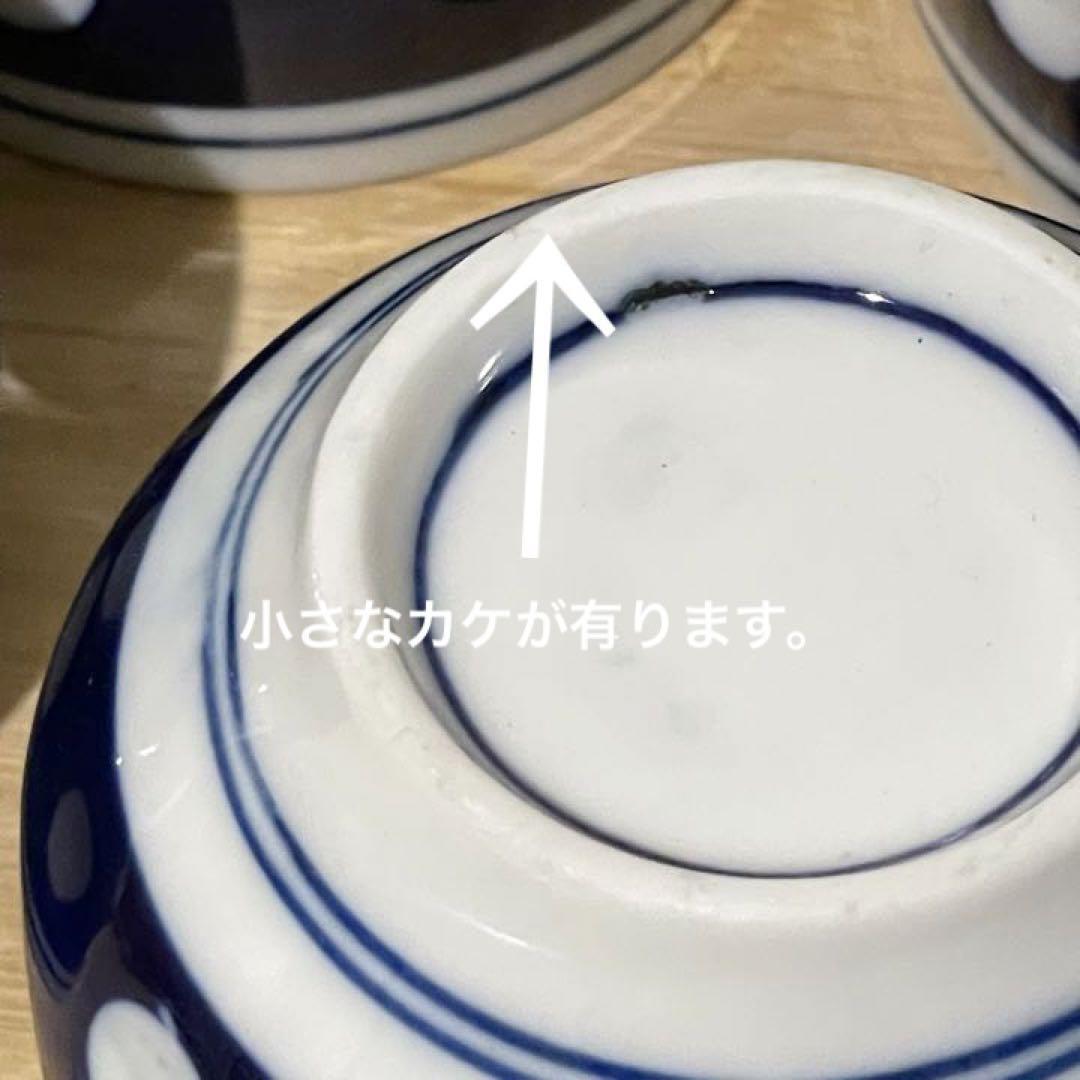 写真5枚目 白地の部分に着色の様な箇所が有りますが、こちらは釉薬の下に有るため、製造時のペイントで付いた物です。