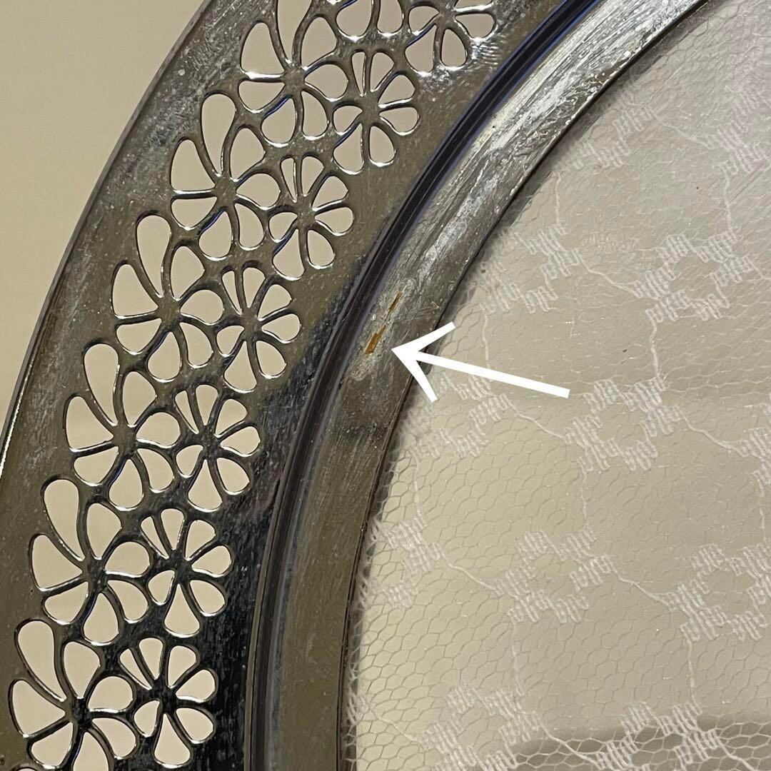 ガラスの間にレースの挟まったとても素敵なデザインの足付きトレイです♪