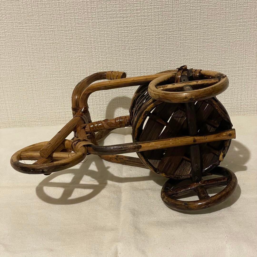 写真10枚目 バスケットと三輪車を繋ぐ部分の網目が途中無くなっている箇所が有りますがこちらも元からのデザインと思われます。