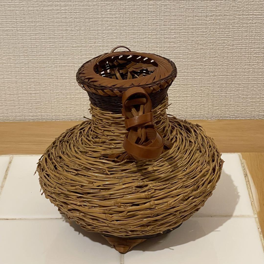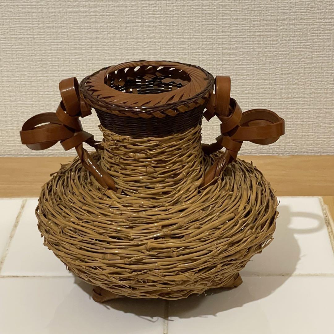 【ヴィンテージ】✴︎ 木製フラワーベース型バスケット:編み目の丁寧なデザイン ✴︎
