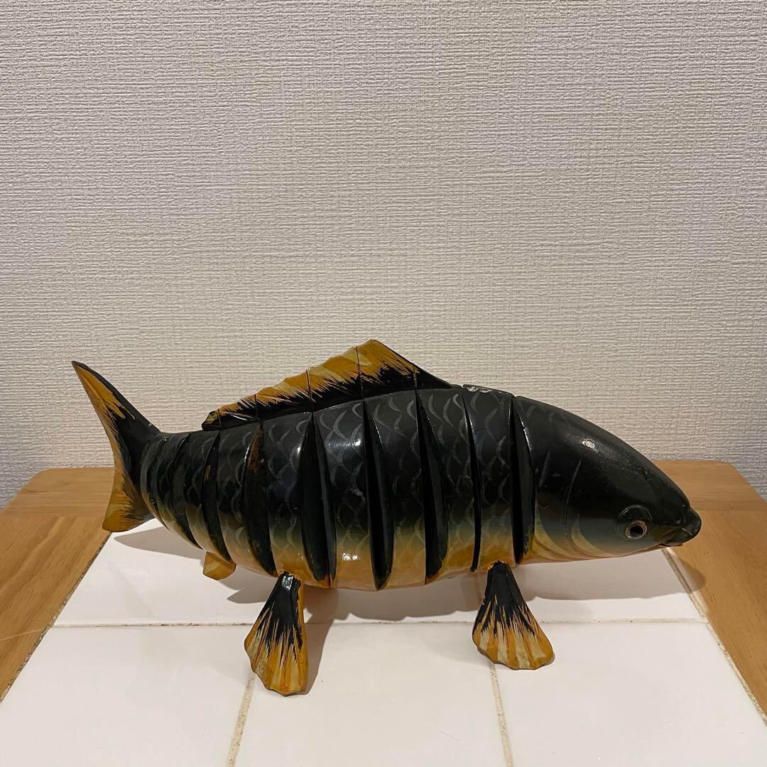 【ヴィンテージ】✴︎木製の魚の置物 クネクネ動く胴体がユニーク