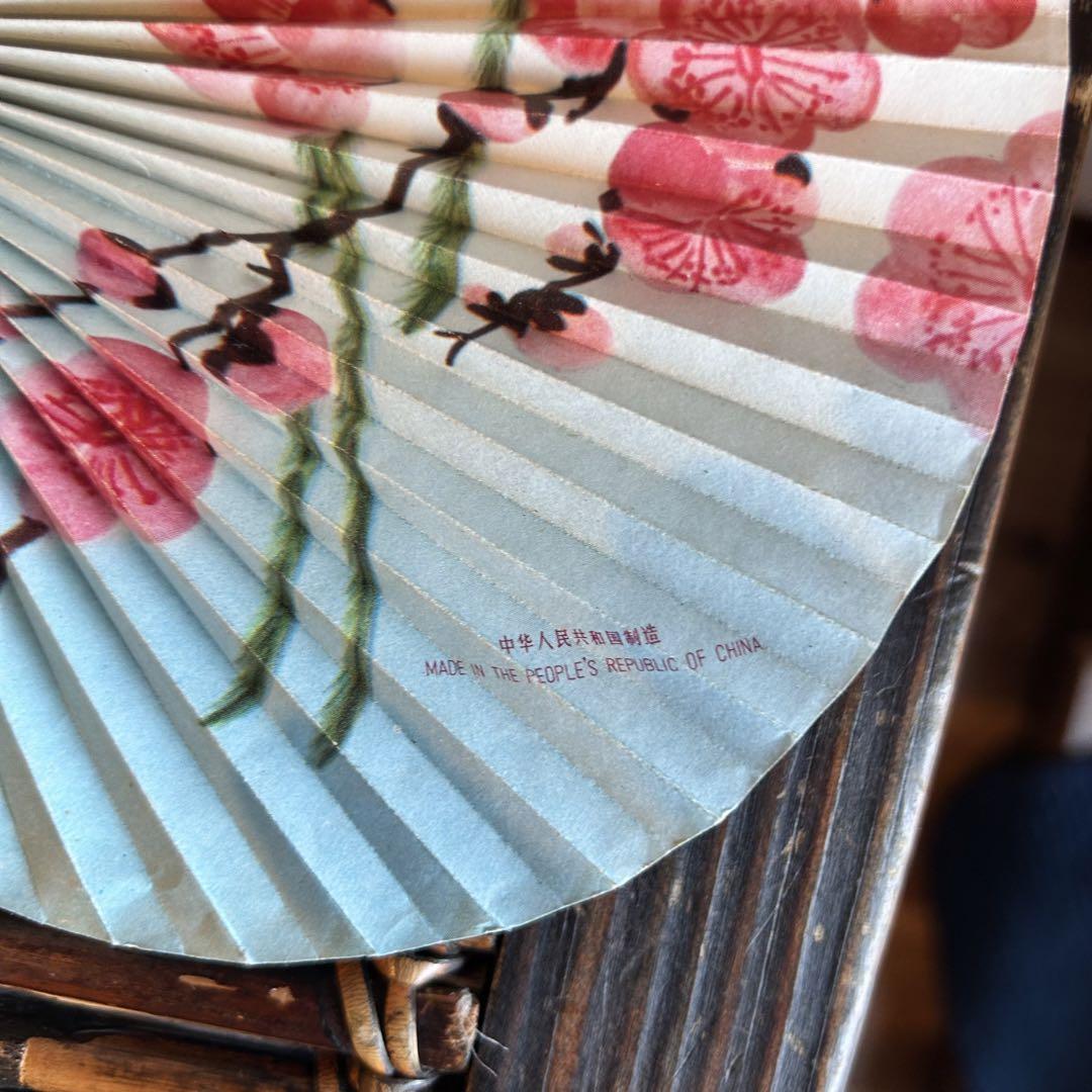 【レトロ】中華風組み立て式丸扇子 - 小鳥と梅の美しいデザイン