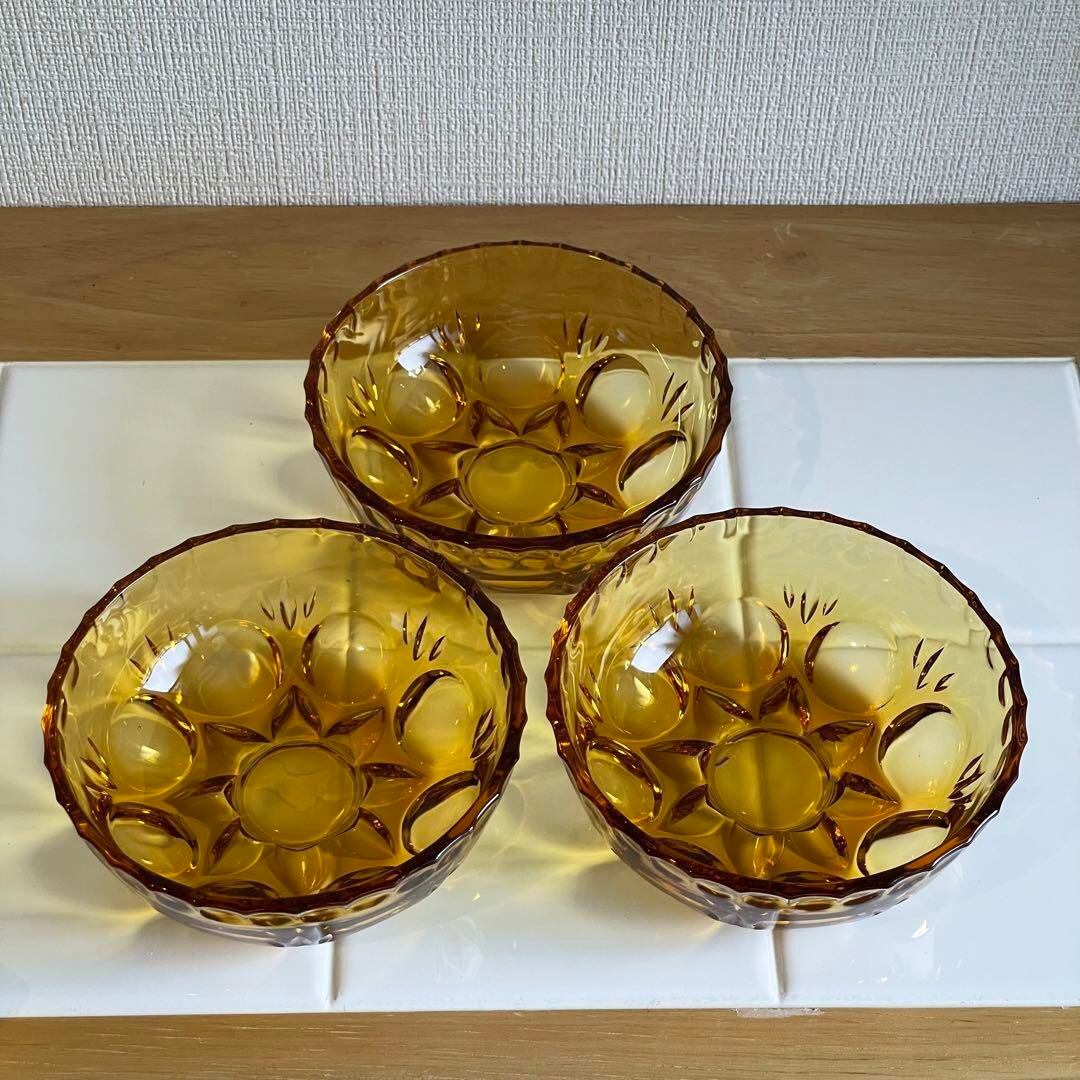 アデリア・ルックシリーズのアンバーガラスのボウル3個セットです♡