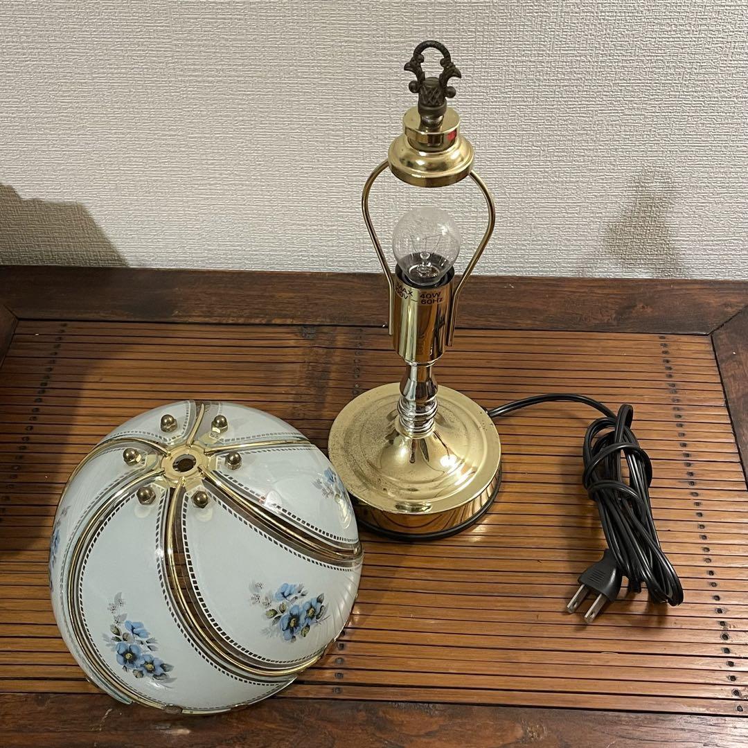 ガラス製のシェードにレトロな青いお花のデザインです♪