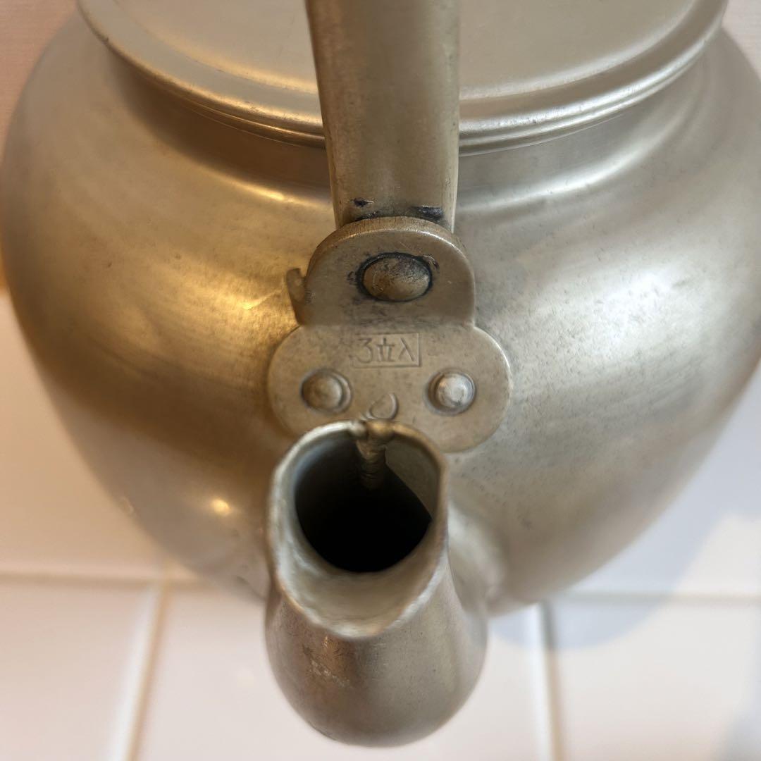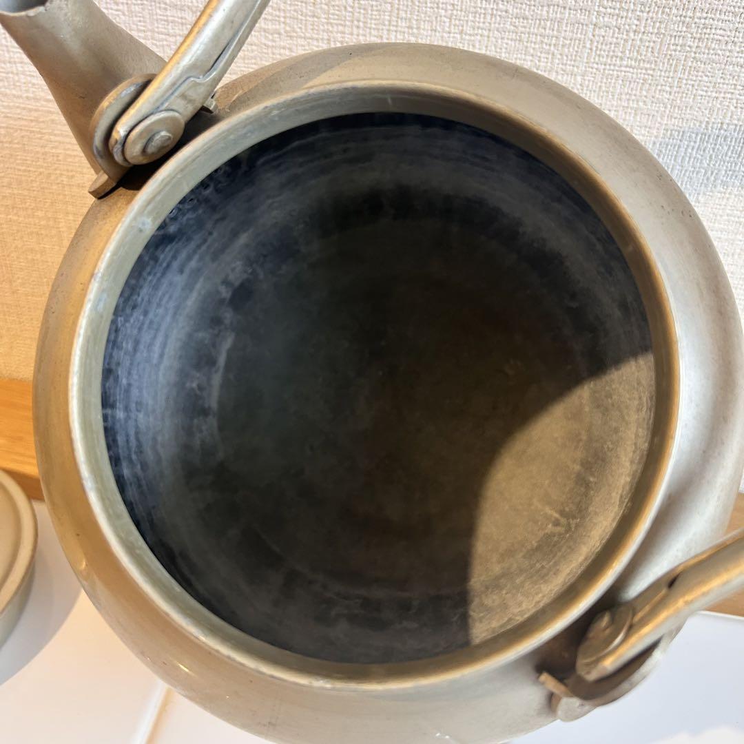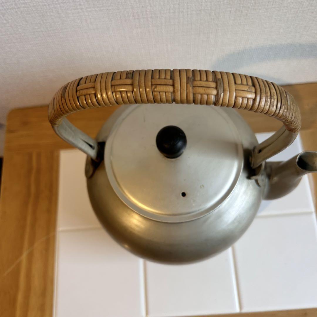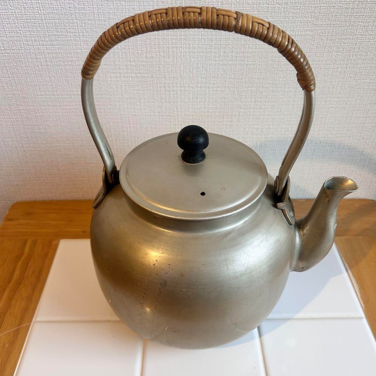 アルミ製の本体と持ち手の天然素材が昭和を感じさせる可愛いやかんです♡