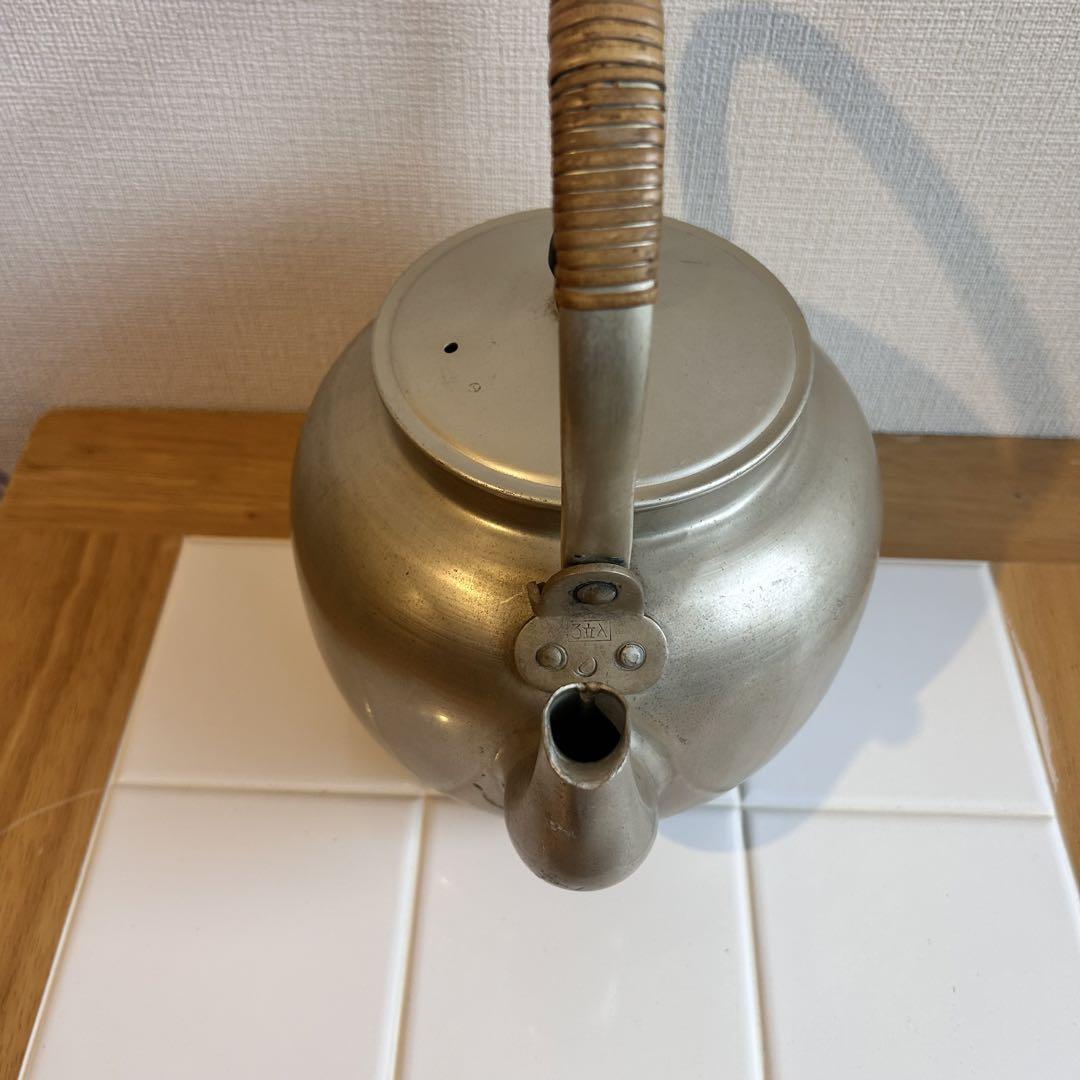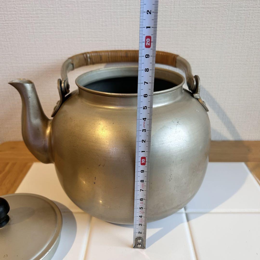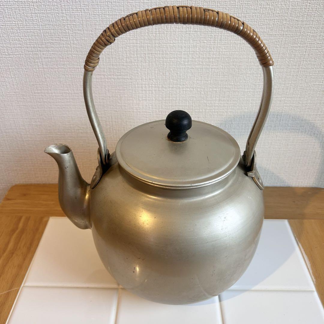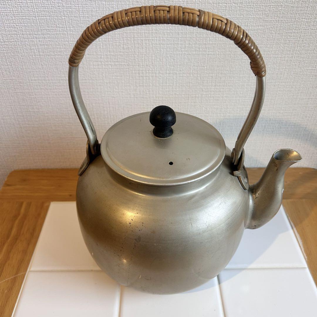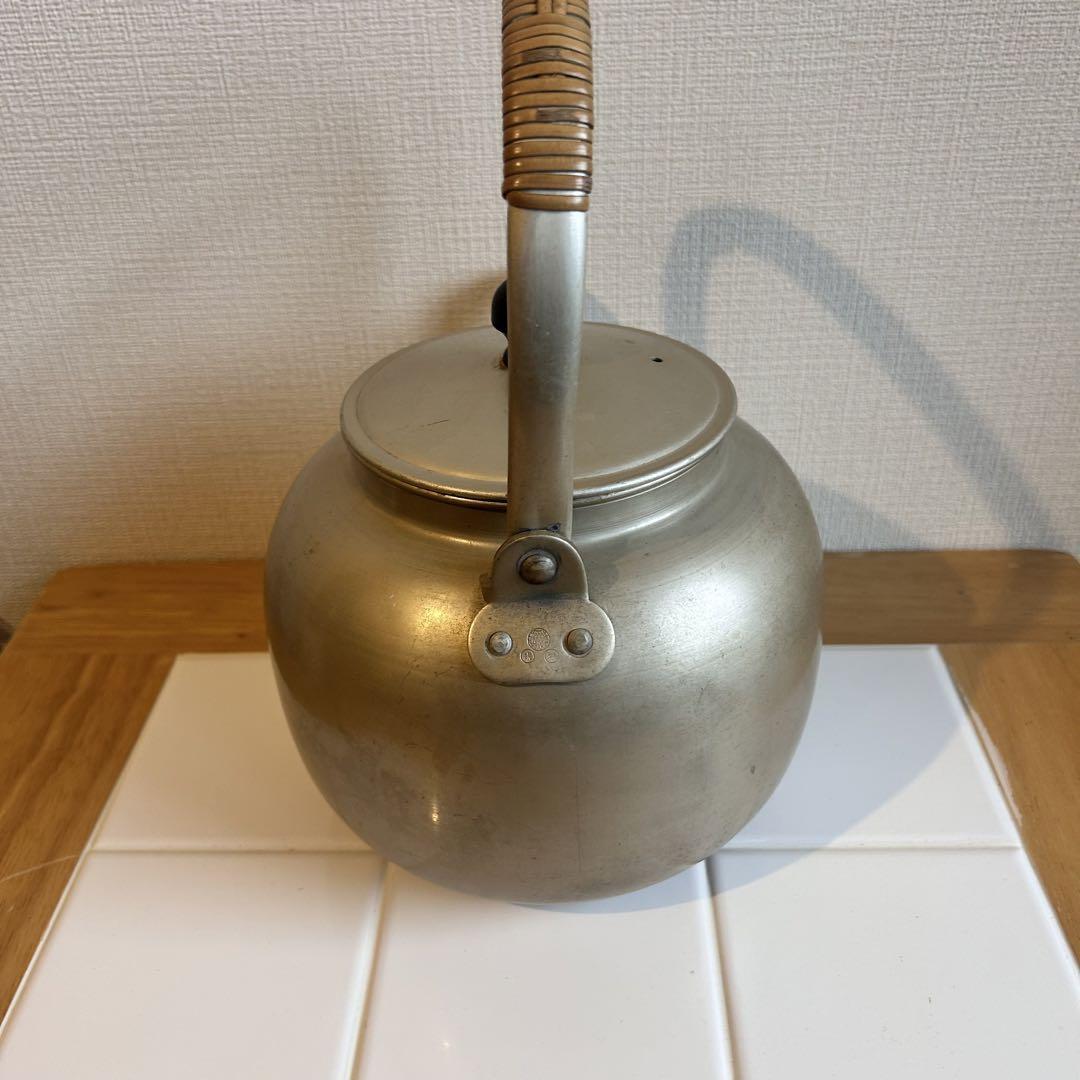 【昭和レトロ】アルミ製やかん◎ラタンで編まれた持ち手が珍しさ◎可愛さ◎3㍑
