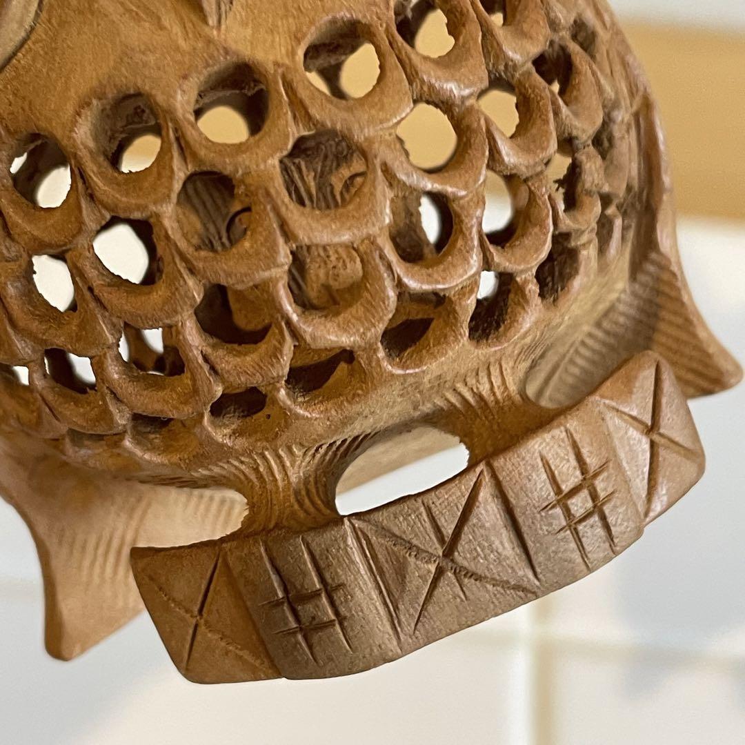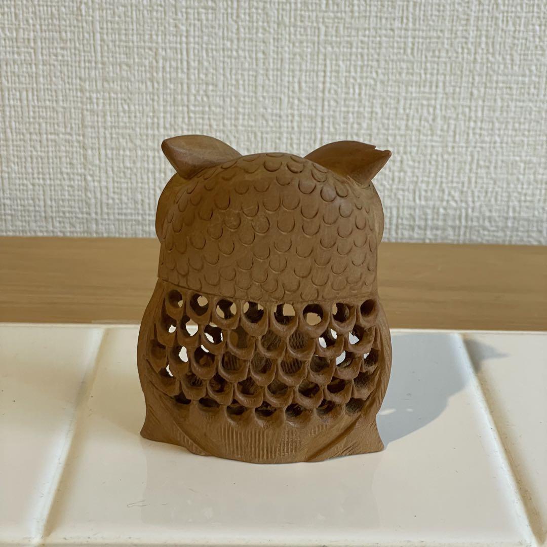 木彫りのフクロウの中にもう1羽フクロウが居ます♪