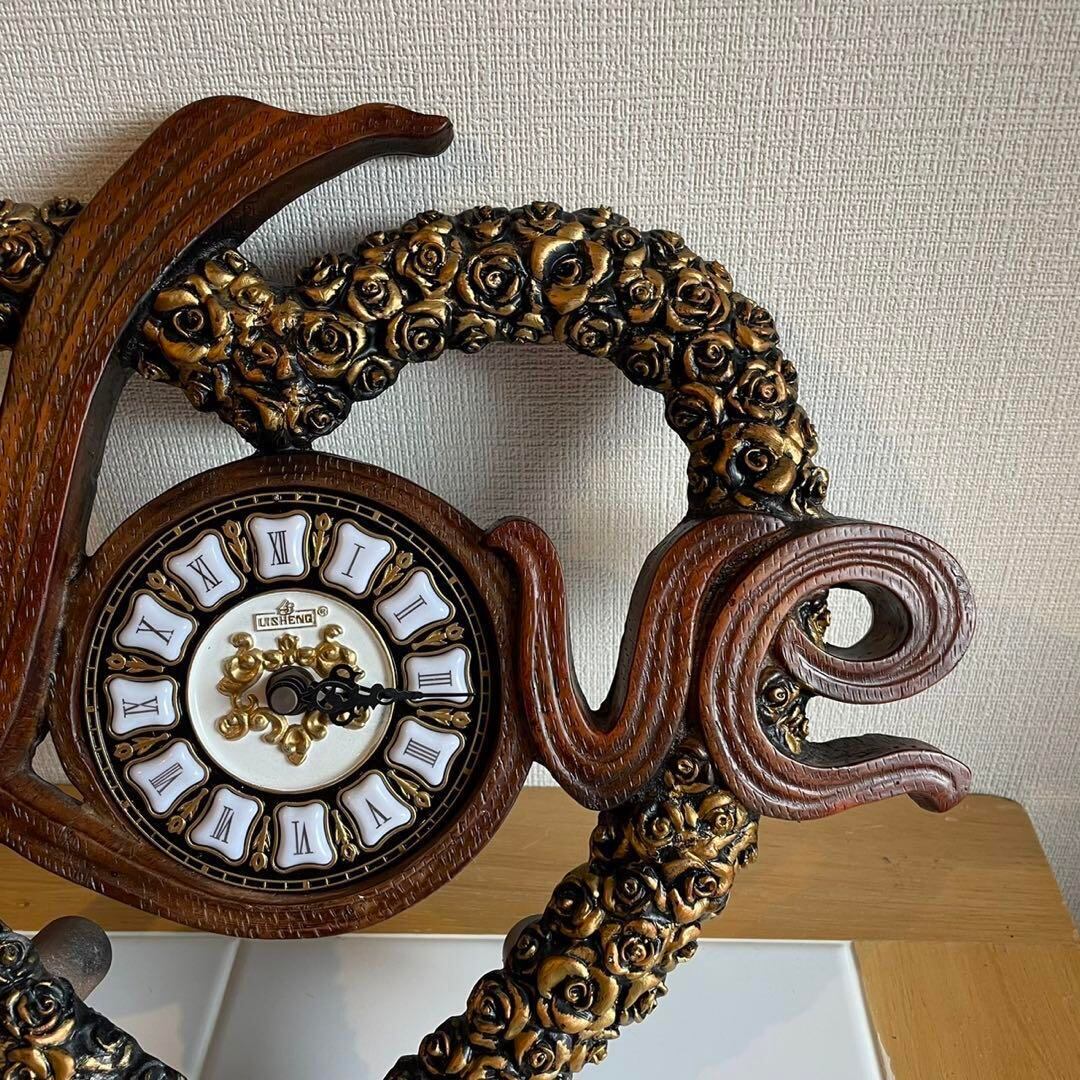 【ヴィンテージ】ハート型LOVEデザイン壁掛け時計✴︎ ゴージャスな金色の薔薇装飾