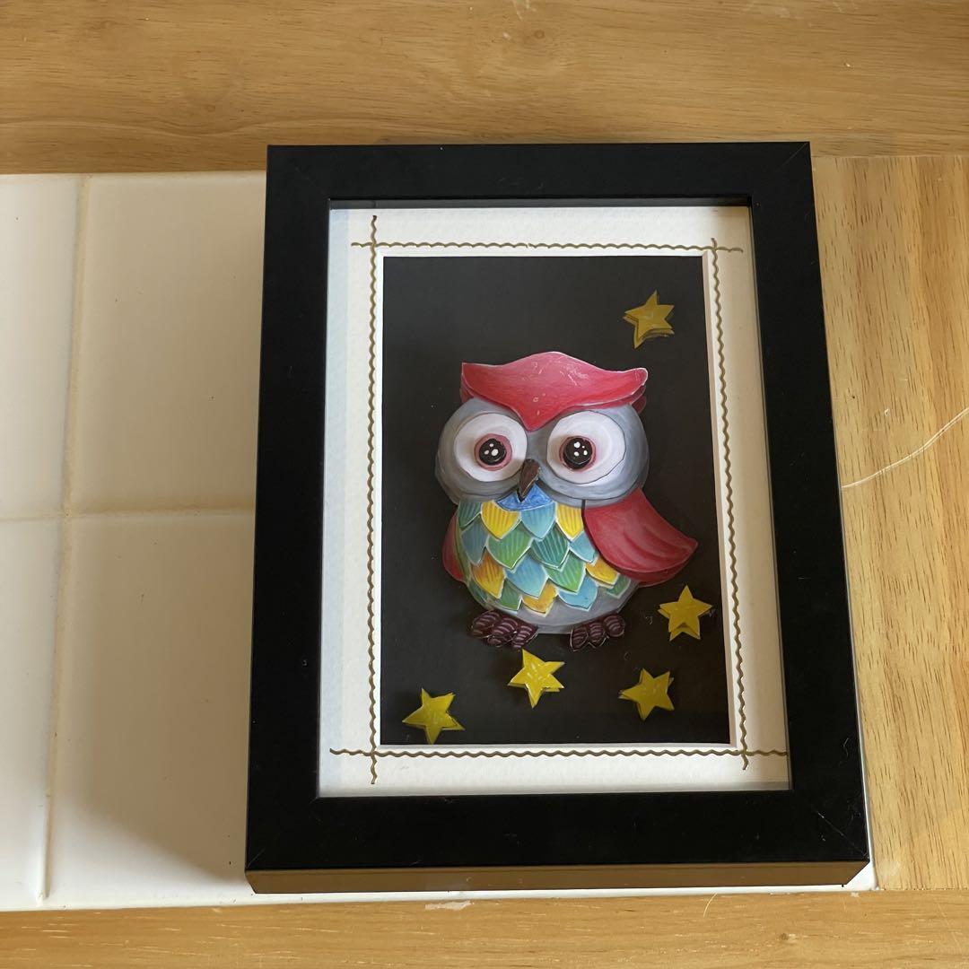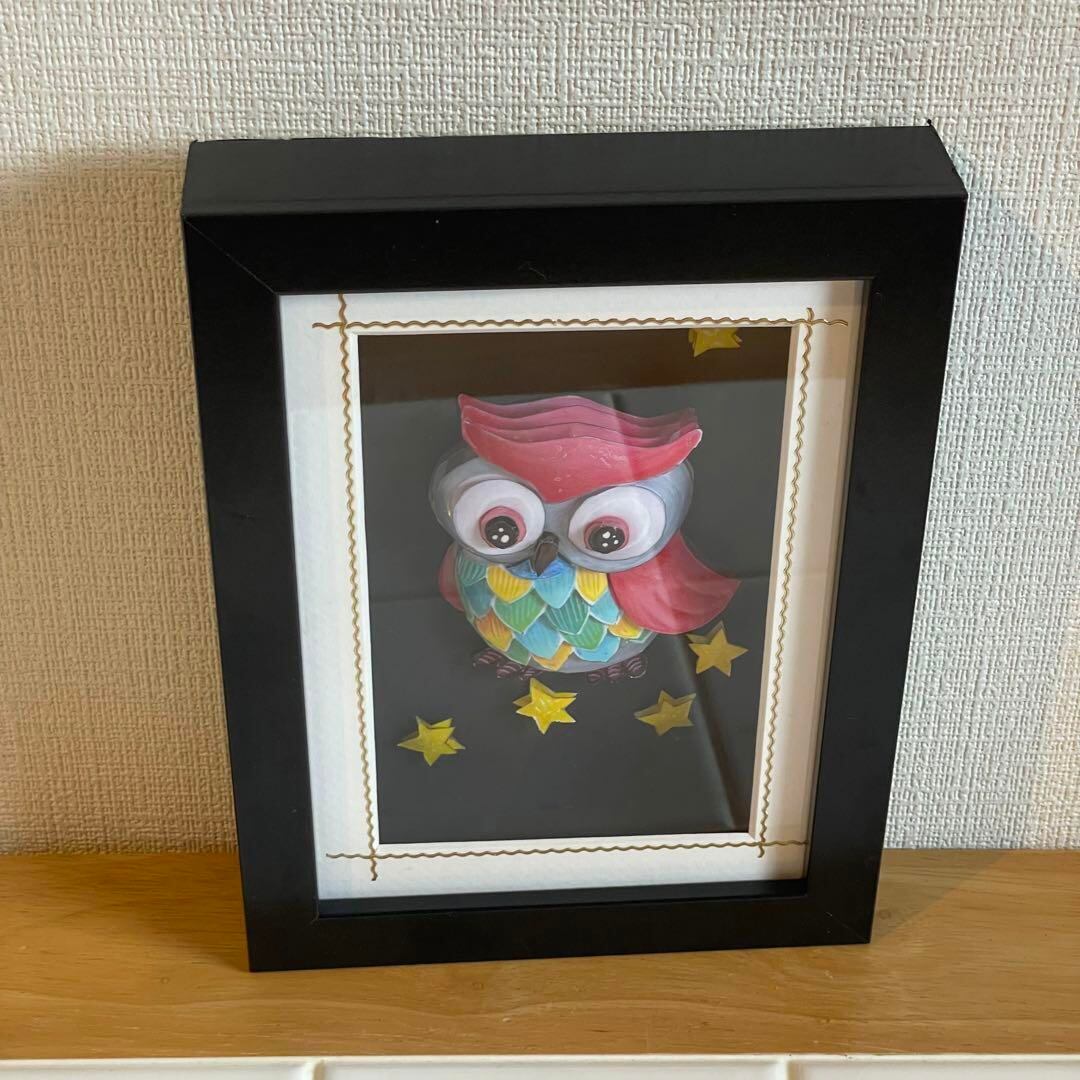 【ヴィンテージ】✴︎シャドーボックス✴︎カラフルなフクロウ✴︎