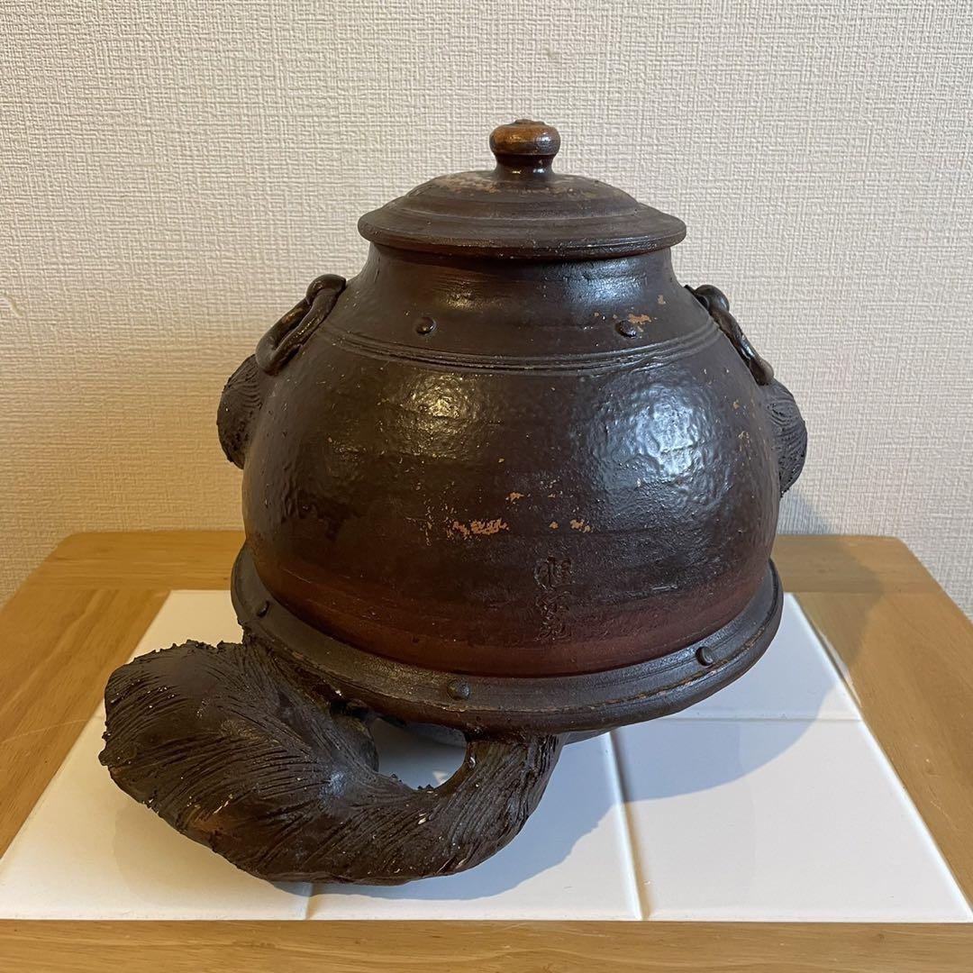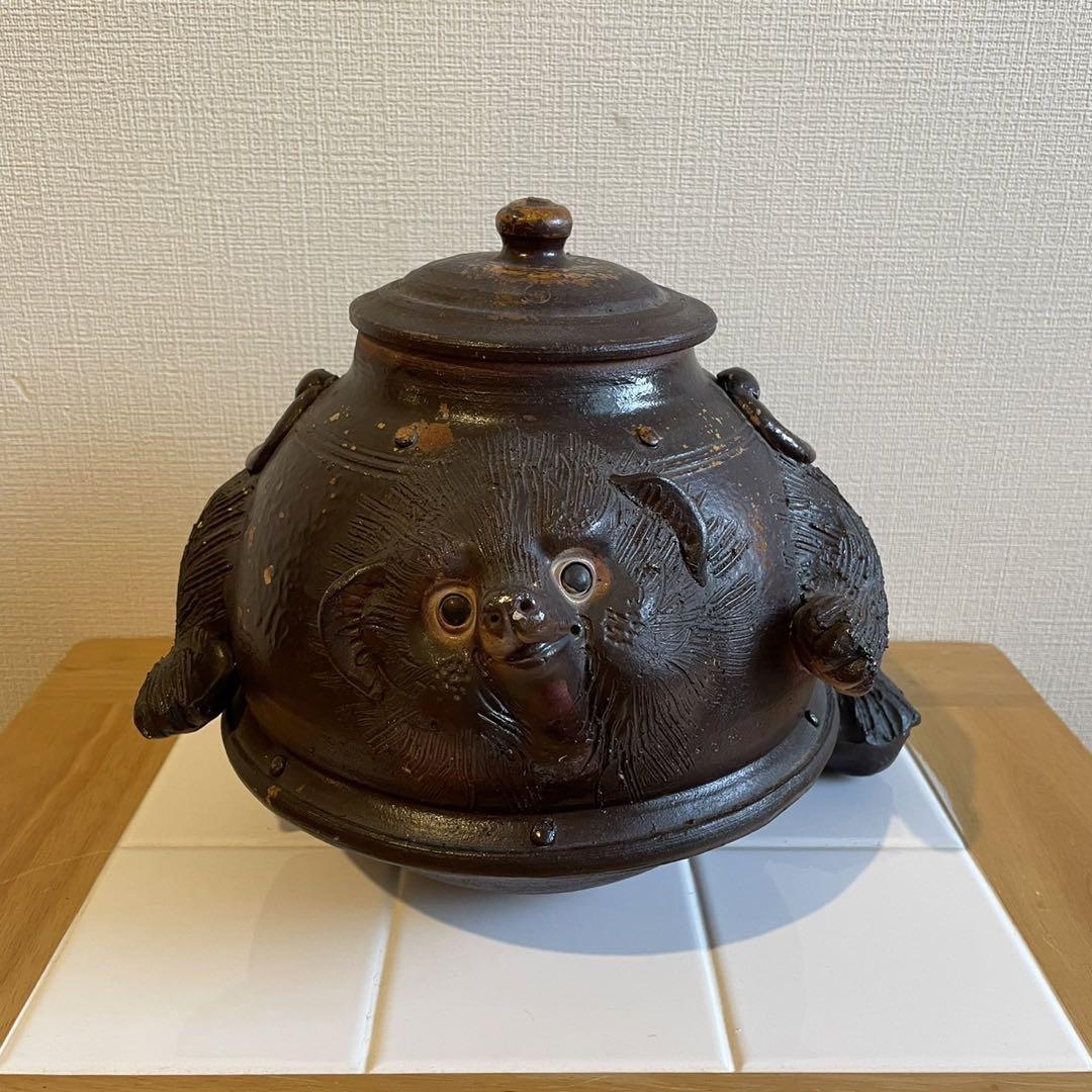 たぬきをモチーフにしたユニークで存在感のある分福茶釜の置物です♪